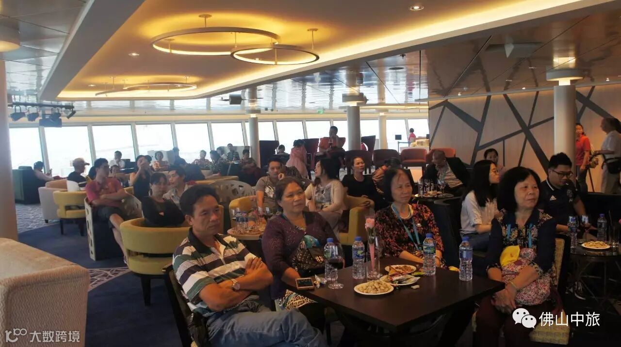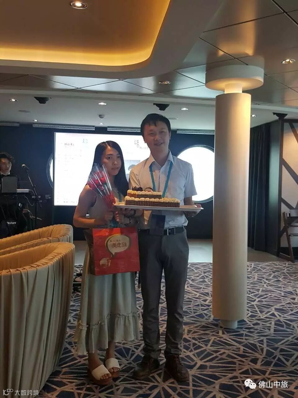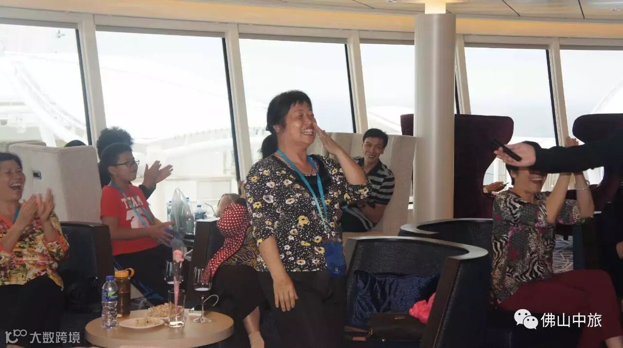 阿詹跟团友互动,FANS们可乐了,还有星梦游轮送出的企鹅船长公仔。