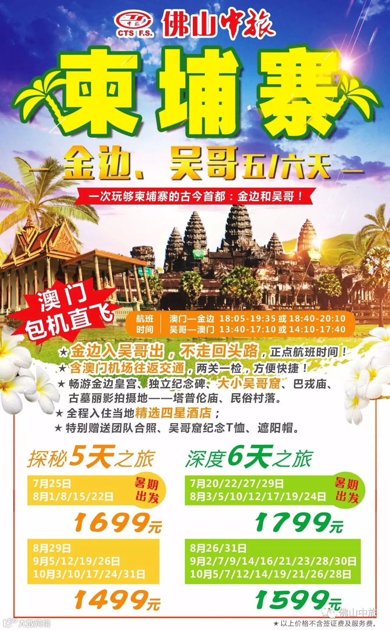 澳门直飞金边,逢四、六出发6天