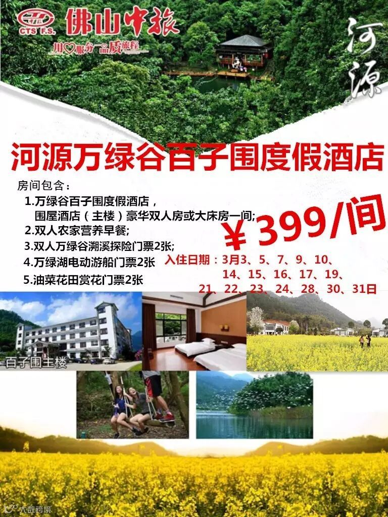 3月10日-31日出发线路,一天团优惠10元,二天团优惠20元,三天团30元(特价线除外)
