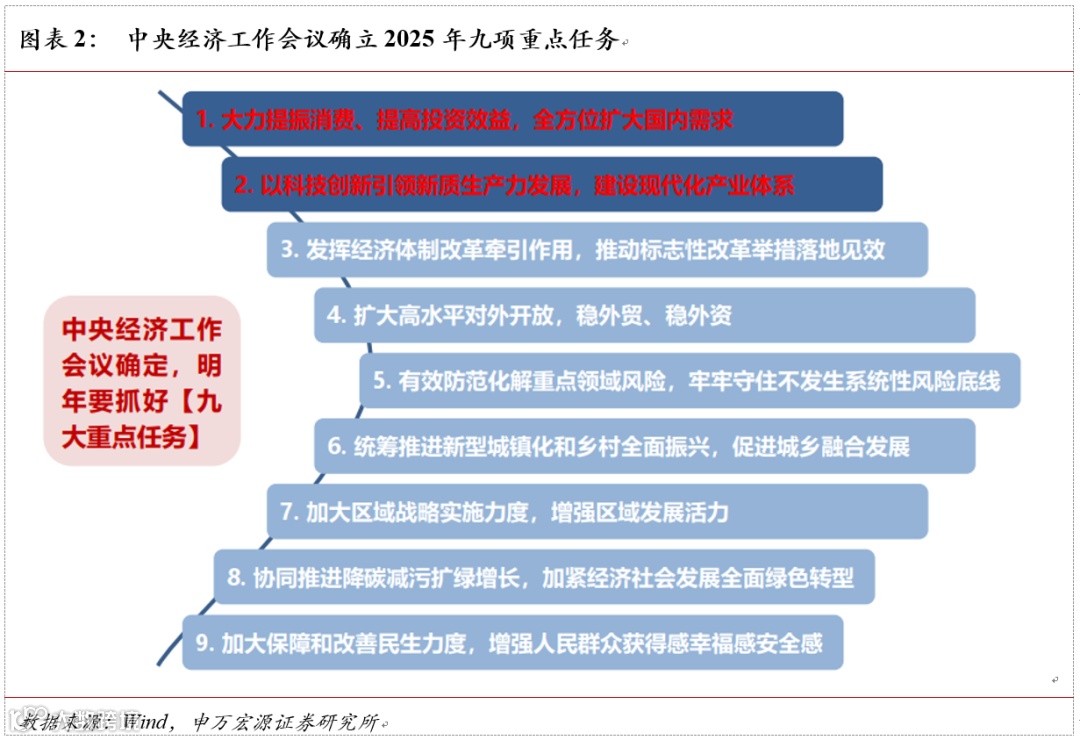 中央经济工作会议将消费摆在了最突出的位置,延续12月政治局会议定调,指出“着力提振内需特别是居民消费需求”。中央经济工作会议将“大力提振消费”放在九大任务中的首位,而2023年消费仅在第二位且被囊括在“扩大国内需求”内部。在九大重点任务部署后的总结段,会议强调“针对需求不足的突出症结,着力提振内需特别是居民消费需求”。