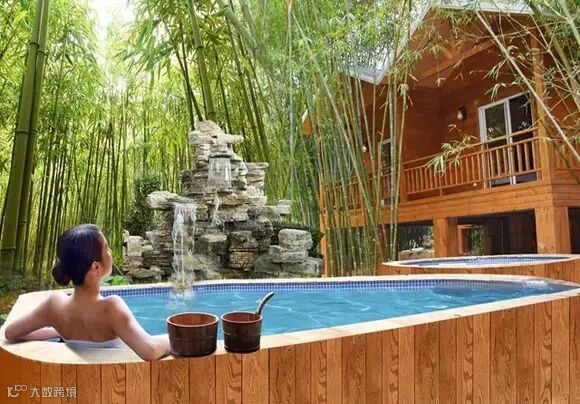 私家竹林汤泉国内罕见的保健汤泉御竹轩汤泉日出水量达4000吨,水温常年保持在60℃以上,富含钙,钠,镁,钾、氡等30多种微量元素,对多种疾病具有良好的辅助疗效。