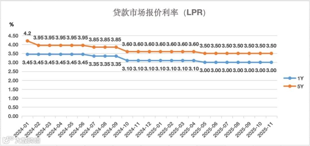 11月20日,央行授权全国银行间同业拆借中心公布新一期贷款市场报价利率(LPR):1年期LPR为3.0%,5年期以上LPR为3.5%,与上期报价一致,连续第六个月维持不变。由于作为LPR“定价锚”的公开市场7天期逆回购利率未调整,银行净息差压力不减,报价行缺乏主动下调LPR报价加点的意愿。