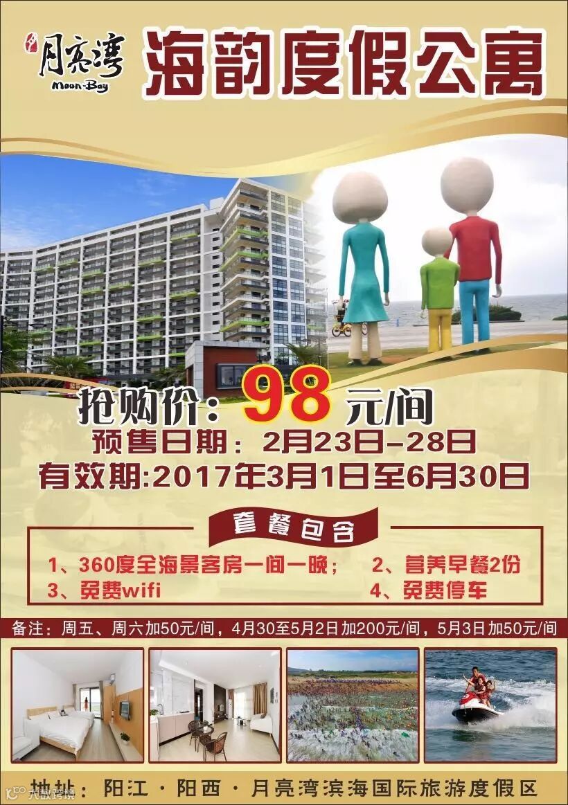 阳西沙扒月亮湾海韵度假公寓位于阳江阳西县沙扒月亮湾度假村,近月亮湾海韵广场,周边风景