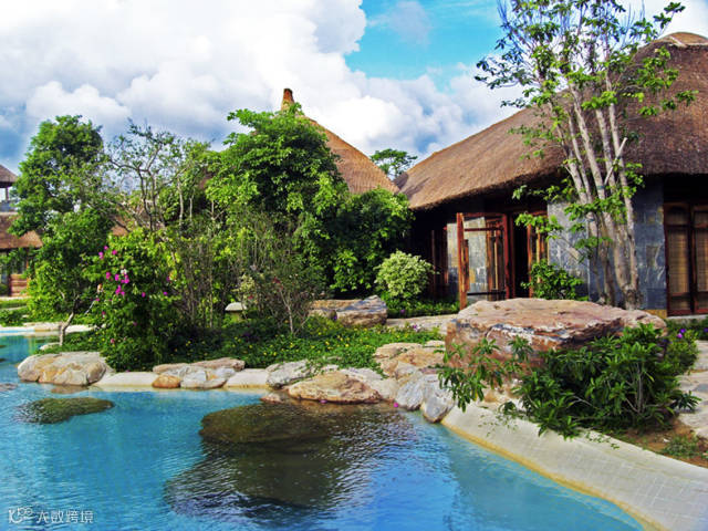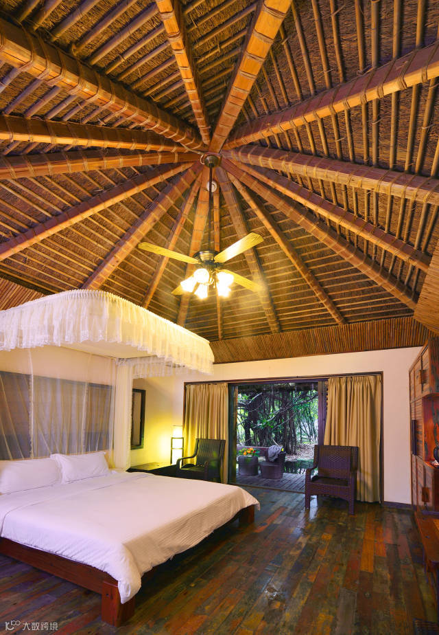 原生态茅草别墅,实木顶、花岗墙,雷州半岛古老的村落文化,庭院精巧雅致,江南风情十足。御林居酒店,室内设施完备,软绵舒适的被铺,面朝大海。