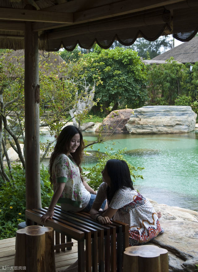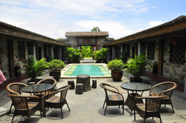 古色古香的四合院融合了南北方四合院的特点,里面还带有温泉池。温泉是这个海岛上的大特色,是钻地800多米深的海水温泉。