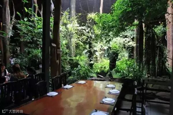 进到里面发现这是一个以原始森林为主题的餐厅,就像一个庞大的植物园,放眼望去皆是雅致的风景。您方法真的进入一座森林,里面数目扶疏、小巧流水、鸟语花香,用餐座位完全融入大自然中。