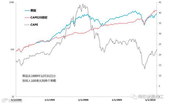 但是,历史上曾经有过以CAPE率来择时的黑天鹅,发生在上世纪90年代到08年结束。踏空两轮牛市,代价惨重,我们现在以上帝视角可以对这些东西一笑而过,但是如果真是置身其中,看着别人天天财富稳步增值,自己却原地踏步的滋味很难想象。最终很可能导致自我怀疑,频繁地更替模型等等不利于长期财富积累的行为学缺陷。