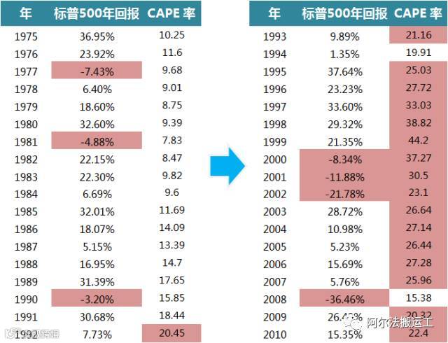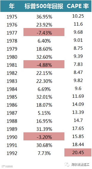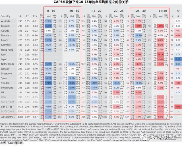用一句话来概括就是,CAPE比率 与未来市场回报有明显的负相关性,并且较高的CAPE比率预示着较大的暴跌可能。
