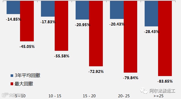 而与之伴随的是,短期内平均回撤及最大回撤幅度的增高。当CAPE比率 高于25时,历史上更是出现过83%的跌幅。