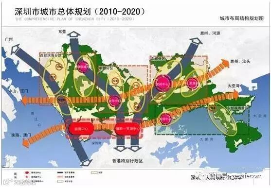 “三轴两带多中心”清晰地描绘了深圳的地理位置以及区域划分,政府的规划意图也不言而喻。