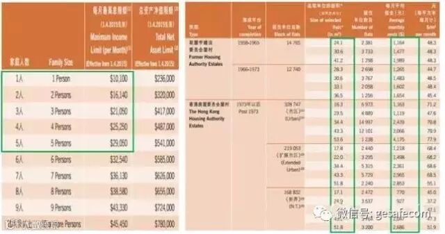 公租屋三口之家的月收入中位数为16000港元,根据公租屋每人13.1平方米的空间来计算,一个三口之家的居住面积约为40平方米,对应的月租金就是2000-3000港元之间。公租屋居民在住房上的花销比例为15%左右。公租屋的人数比例和租金花费比看起来还不错,但公屋的居住空间非常小,再加上香港物价高企,所以公屋住户的生活并不轻松。(数据见下图,左图为申请公屋租住的收入限额,右图为申请公屋自置的收入限额。数据来源:香港房屋署2015年数据)