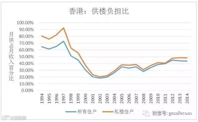 我先用一个简单的“供楼负担比”指标让大家感受一下香港人的买房压力。