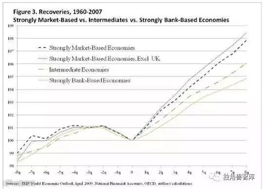 统计表明,危机后复苏速度最快的总是金融体系以资本市场主导的四个国家,即美国、英国、加拿大、澳大利亚,而复苏最慢的无一例外都是银行主导的四个国家:奥地利、葡萄牙、西班牙和比利时。