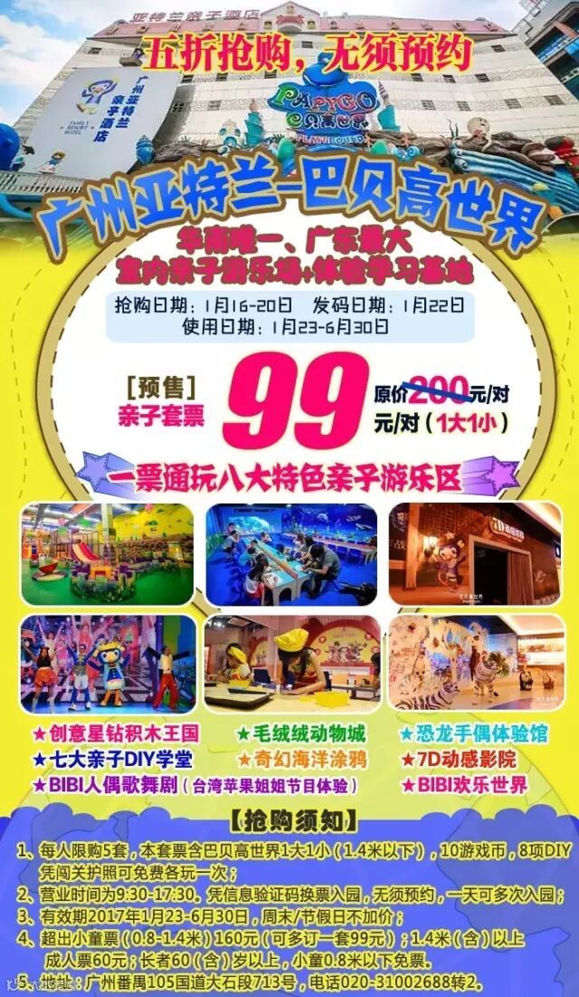 广州亚特兰巴贝高世界亲子套票