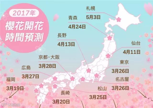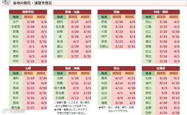每年一月中旬至五月下旬间,樱花会从南向北,