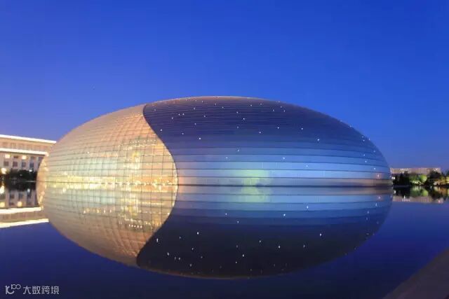 它位于天安门广场西,由国家大剧院主体建筑及南北两侧水下长廊、人工湖、绿地组成,整个壳体结构重达6475吨,东西向长轴跨度212.2米,是世界上最大的穹顶。椭球壳体外环绕人工湖,散发着极具质感的金属光泽,宛如一颗湖中明珠。