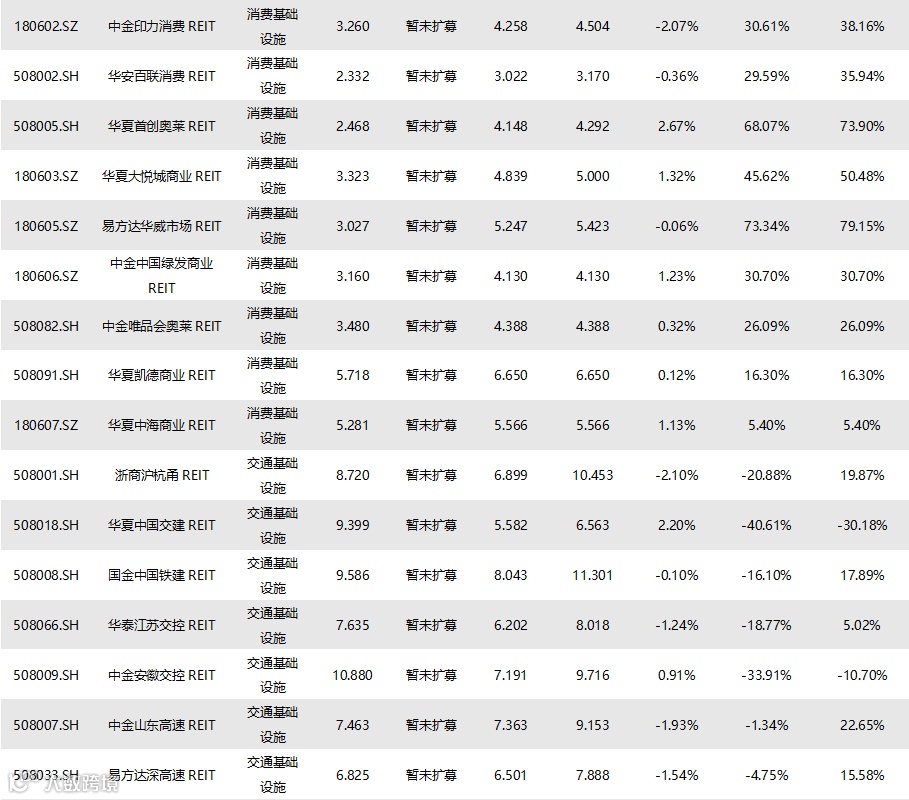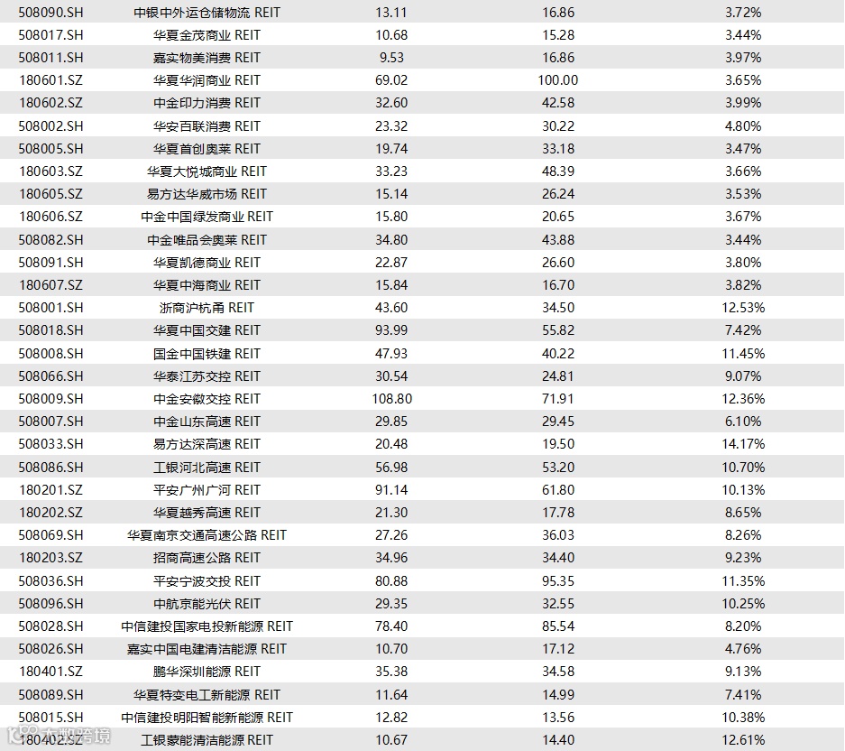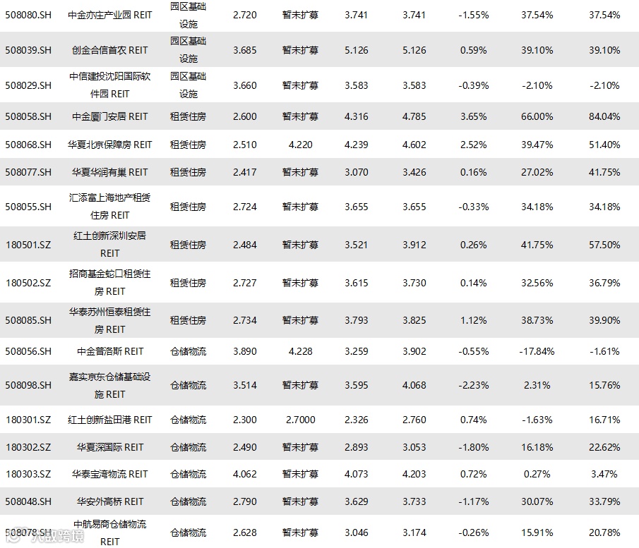 截至11月28日收盘,已上市77只REITs的收益率情况如下表所示: