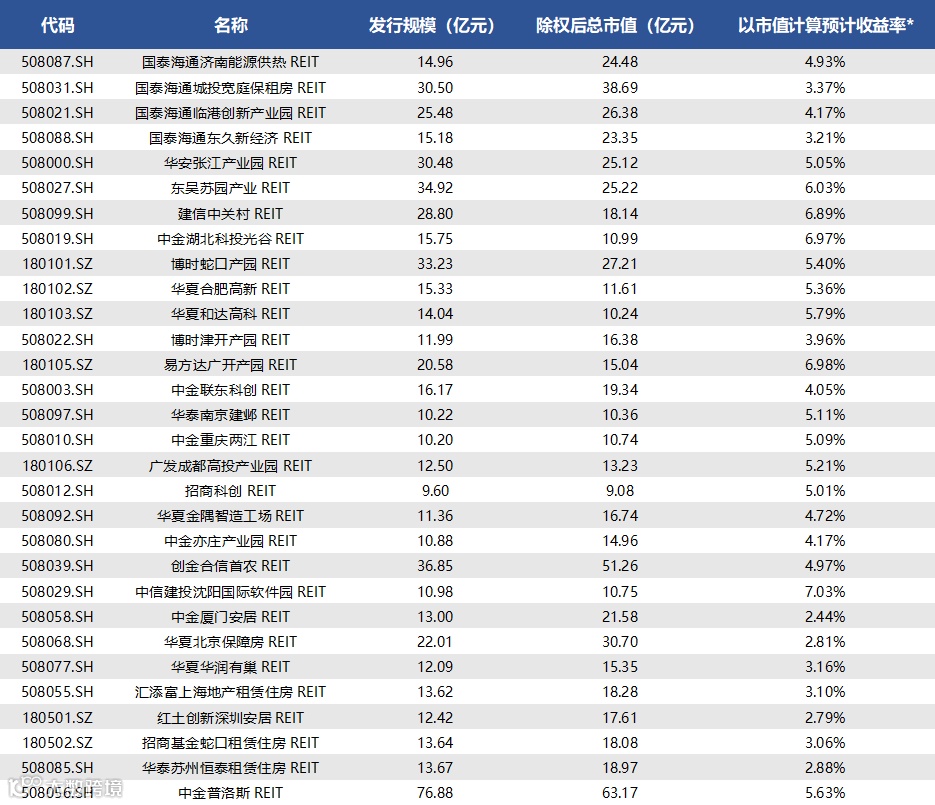 注1:以市值计算预期收益率=基金招募说明书公开披露基础设施项目2025年可供分配预测金额(年化)/截至2025年11月28日收盘基金市值。如未披露2025年全年可供分配预测金额的基金,以其招募说明书披露的最后一年可供分配预测金额为基准,仅供参考。