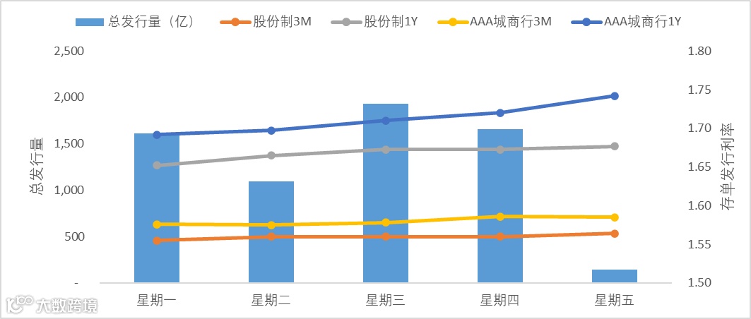上周5个工作日有496只同业存单发行,实际发行量6441亿,发行量较上上周上行626亿。