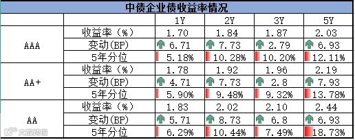 信用债方面,各期限中短期票据和企业债到期收益率整体上行,中债中短期票据到期收益率1年期上行5.2bp,3年期上行5.99bp;企业债到期收益率1年期上行3.48bp,3年期上行1.66bp。
