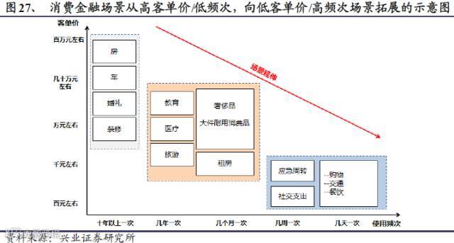 得益于移动互联网技术的发展、大数据征信的创新带来的风控模式创新,消费金融场景从传统的高客单价/低频次的房、车等消费场景,逐渐向低客单价/高频次场景拓展。我们认为,具备场应用能力以及优质客户资源的消费金融服务商,有望在新一轮市场竞争中占得先机。