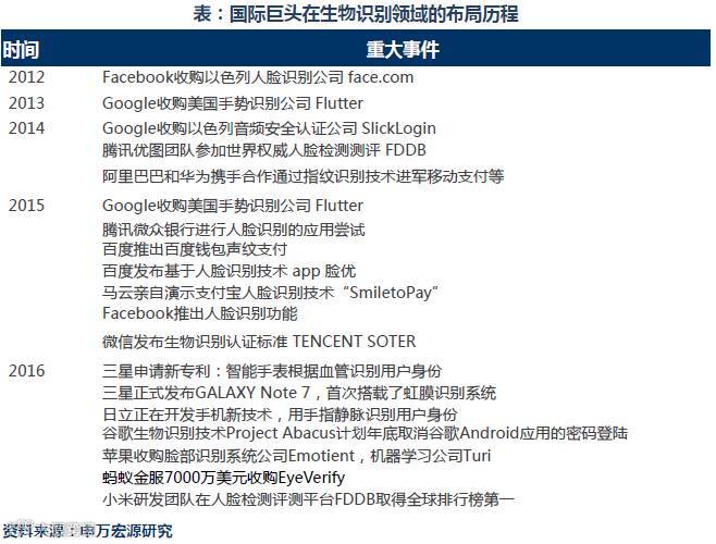 我国生物识别公司也不甘落后,在算法及制造实力方面取得巨大成就,成功在各大支付场景中大量应用,商业前景广阔。