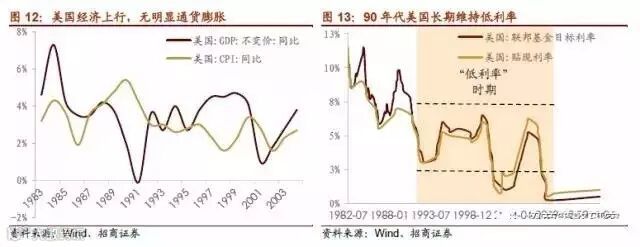 b.90年代摆脱滞涨后,持续保持低利率