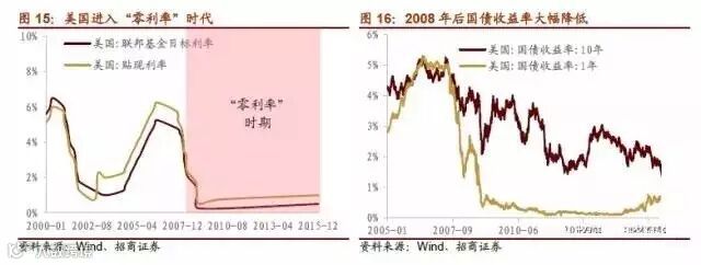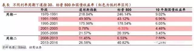 进一步,我们将周期细分。其中2008年以来,美国央行虽采取零利率政策,而2013年5月美联储开始讨论停止货币刺激政策,截止至目前美联储分别于2015和2016年年底各加息一次,并且不少市场观点预计2017年将加息2-3次。因此在周期二中,我们以2013年5月为界将其划分两个阶段,2008年-2013年作为低息率区间。