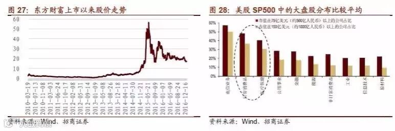 (7)A股市场蓝筹股具有较为明确的投资机会。国内目前A股市场总市值前30位的企业结构与美国日本等发达市场差异较大。科技类(中兴)和消费类(茅台、五粮液)公司匮乏,说明我国经济结构转型还有很长一段路要走,参考美国、日本的经验,经济转型与升级相关行业往往是大蓝筹孕育的摇篮。对于A股而言,结合目前的经济周期和经济发展阶段,我们认为信息技术和医疗保健行业将成为未来30年蓝筹配置的主要行业。
