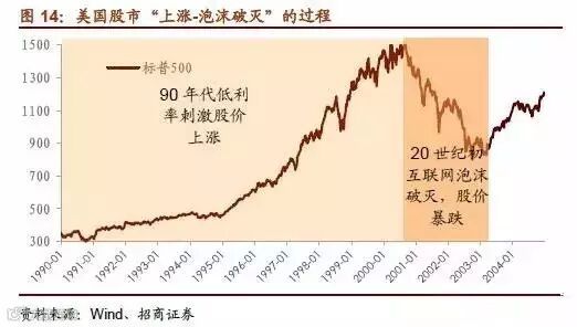 与大萧条时期不同的是,此时美国经济一直处于增长阶段,但充裕流动性催生了互联网泡沫,股市价格背离实质经济,充斥非理性泡沫。