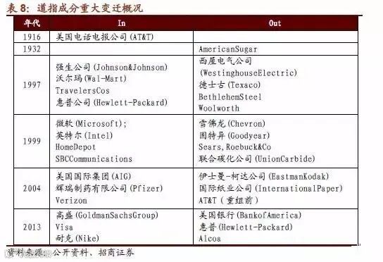 作为最老的蓝筹指数之一,道琼斯30成分股的历史变化可以作为筛选蓝筹的参考标准,这包含两层含义: