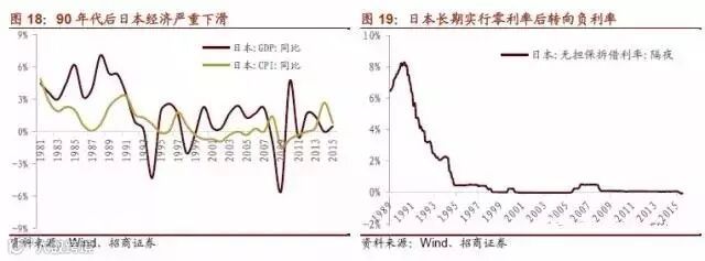 日本于二战后成为首个进入低利率时期的国家。90年代初,资产泡沫破裂,股价和房价大幅下挫。1989年末至1992年7月,日经225指数跌幅接近60%。1991年至1999年,日本全国房价平均跌幅达到31%。实际GDP增长率急剧下降,至1994年,日本经济增速落入负值区间,CPI同比也长期在负值徘徊。日本为摆脱危机,日本银行连续8次降低利润,1995年将至0.5%后,又于1999下调无抵押隔夜拆借利率目标至0附近,“零利率”时期到来。