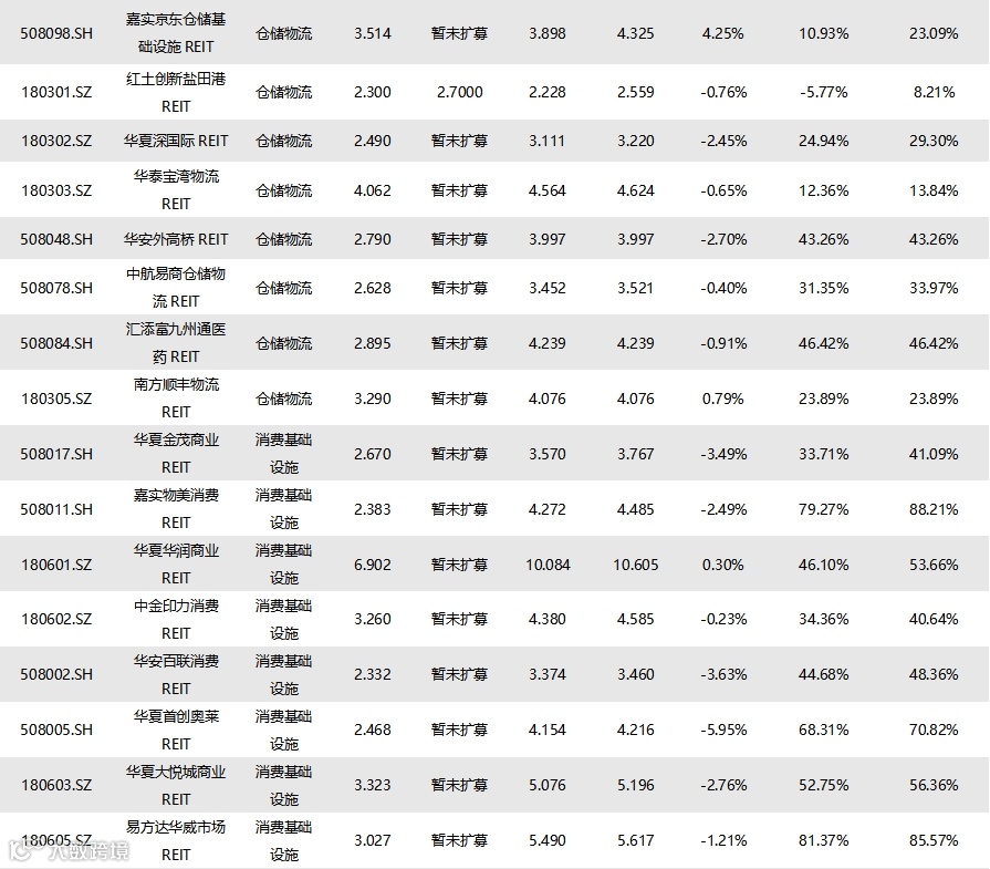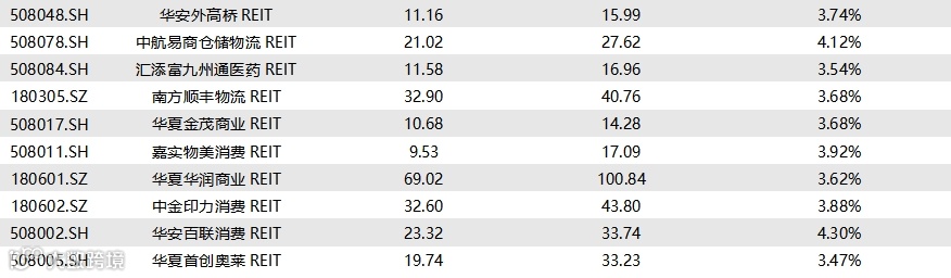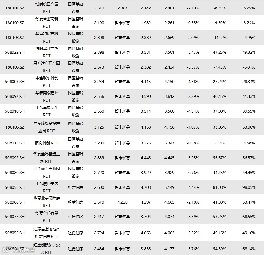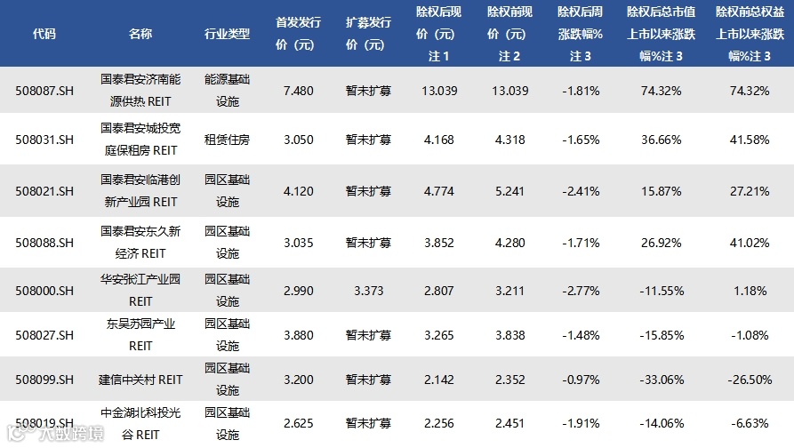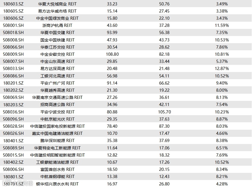 截至7月11日收盘,已上市68只REITs的收益率情况如下表所示: