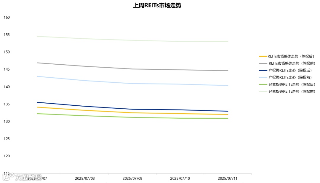 2025年7月7日至2025年7月11日,REITs市场整体呈现缓慢下降趋势,走势情况如下图所示: