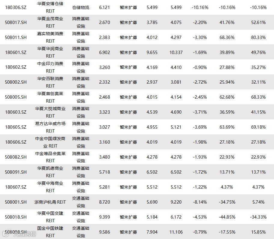 截至12月19日收盘,已上市78只REITs的收益率情况如下表所示: