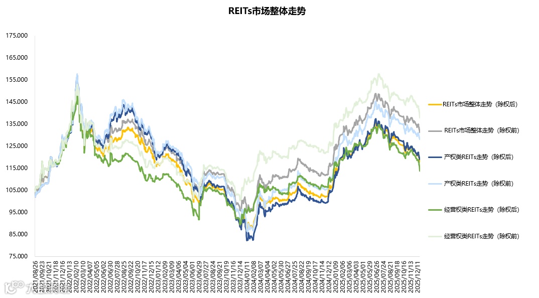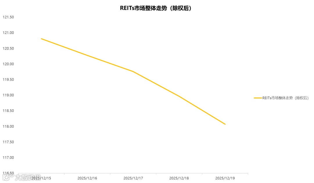 2025年12月15日至2025年12月19日,REITs市场整体呈现下降趋势,走势情况如下图所示: