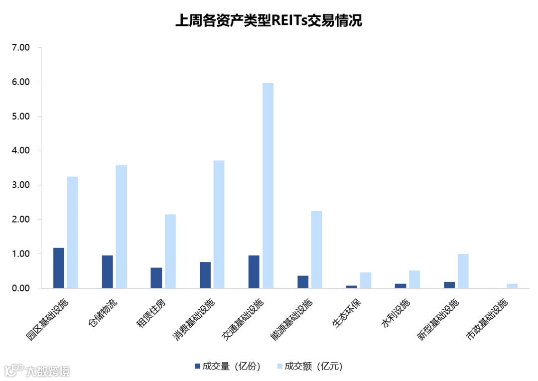 图表5▼上周REITs成交量及交额情况