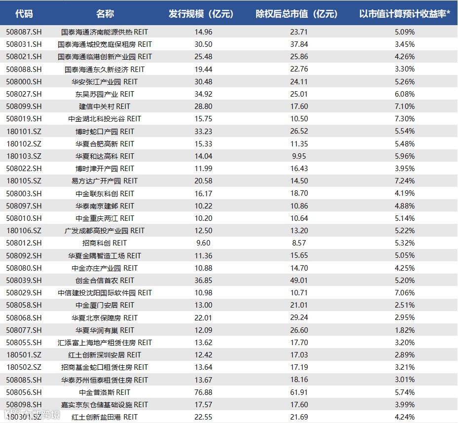 注2:市值包括产品首发市值及扩募市值。基础设施项目可供分配现金流包括产品整体资产组合(首发项目及扩募项目)可供分配现金流。