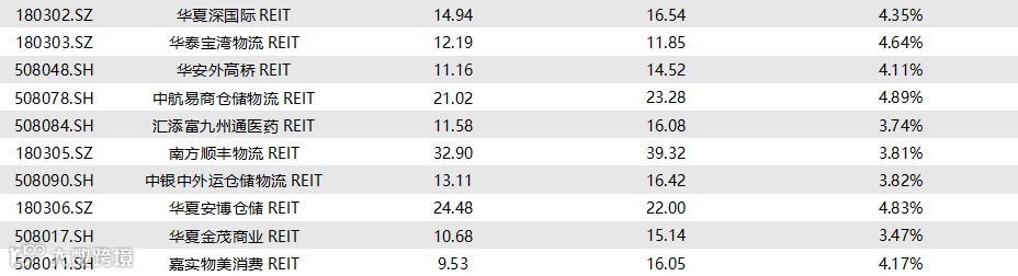 图表10▼已上市REITs收益率统计