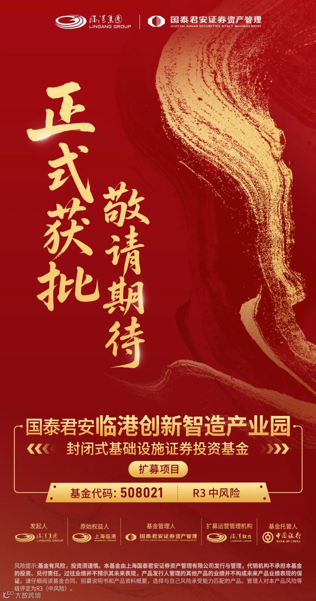 2025年5月30日,中国证监会官网和上海证券交易所官网显示,国泰君安临港创新产业园REIT(基金代码:508021,以下简称“本基金”)扩募申请正式取得证监会批复及上交所无异议函,标志着国泰君安临港创新产业园REIT向着做大、做优、做强迈出坚实一步。
