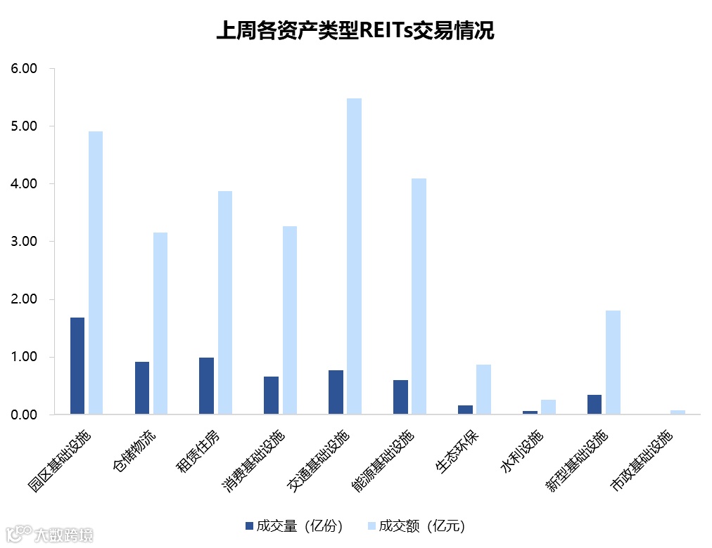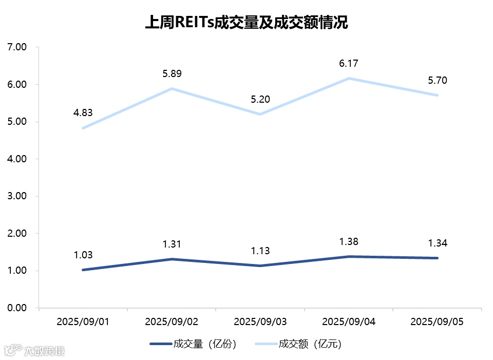 图表5▼上周REITs成交量及交额情况
