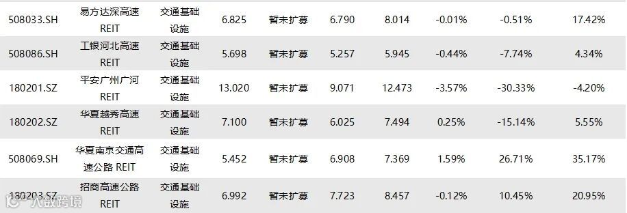 注2:除权前现价,指在基金份额现价的基础上加回其自发行以来对应分红金额后的价格。由于公募REITs高分红的特征以及特许经营权类REITs“分红兼还本”的本质,除权前现价可更好的体现REITs产品的二级市场交易情况。