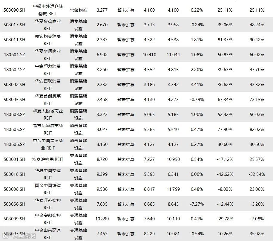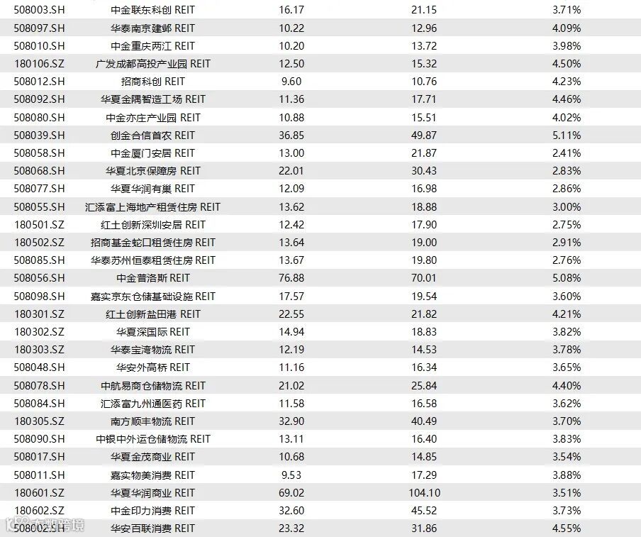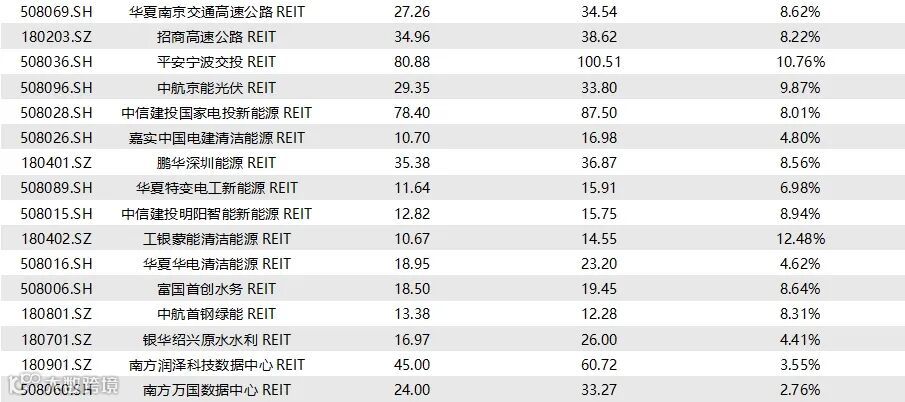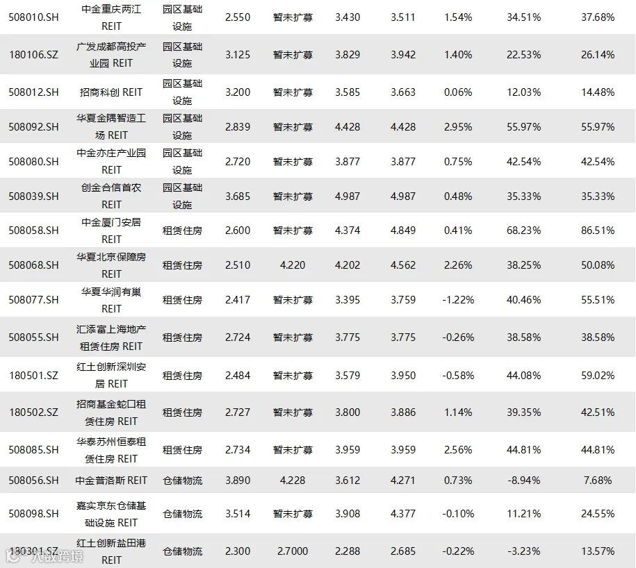 截至9月5日收盘,已上市73只REITs的收益率情况如下表所示: