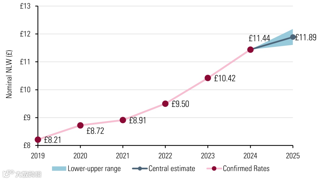 截至今年3月底,英国国家生活工资为每小时11.44英镑,自4月起已提升至12.21英镑;18至20岁员工的最低工资上调至10英镑,而学徒及未满18岁的员工则为7.55英镑。