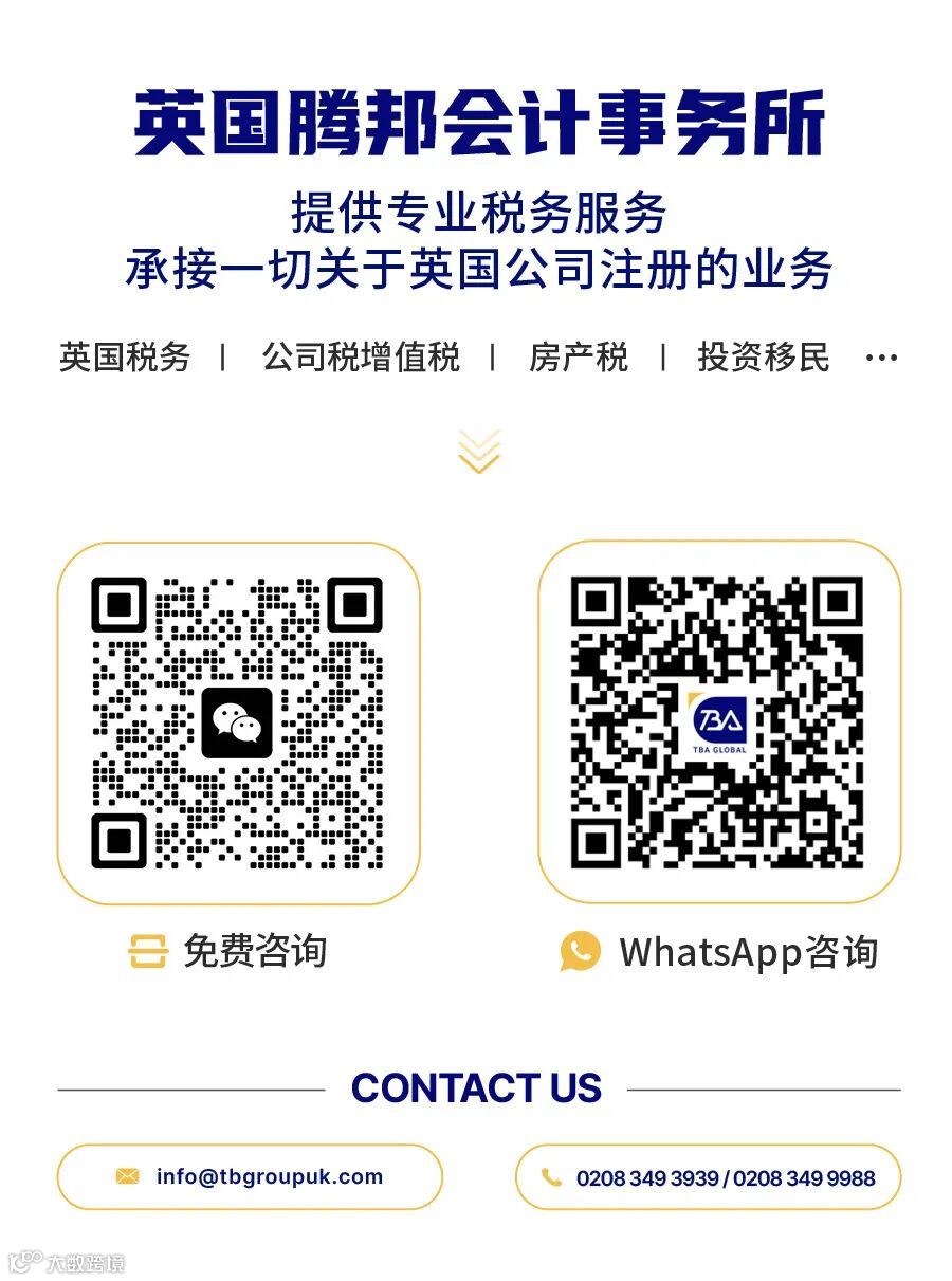 如果您对英国财政新规、税务合规、投资规划或企业财务管理等有疑问,现在就扫描下方二维码。TBA英国腾邦会计事务所的资深团队将为您提供一对一免费咨询,帮助您降本增效,确保财务安全。
