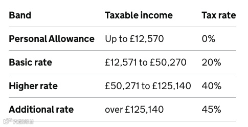 大多数人在缴纳个人所得税之前可以获得一定数额的免税收入,这被称为基本个人免税额。2024-25年的标准个人免税额为12,570英镑,如果您的总收入(包括工资、养老金和储蓄利息等)没有超过该数额,则无需缴税。