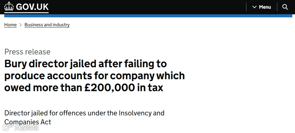 2.英国一公司董事因欠税超过20万英镑被判入狱