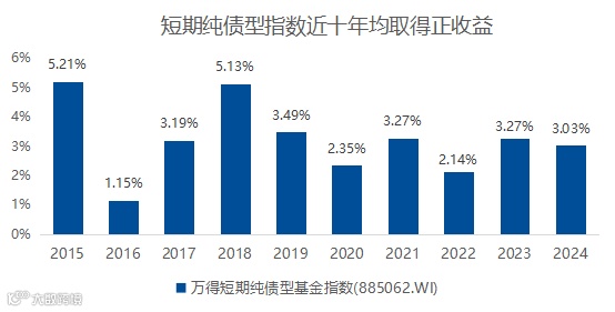 截至2024年末,短期万得纯债型基金指数连续10年获得正收益,年化收益率达3.31%。