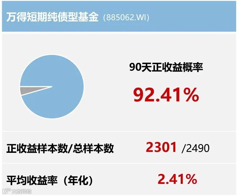 2015年起, 在过去10年中任意一天起观察“万得短期纯债型基金指数”至第90天,取得正收益的概率可观。