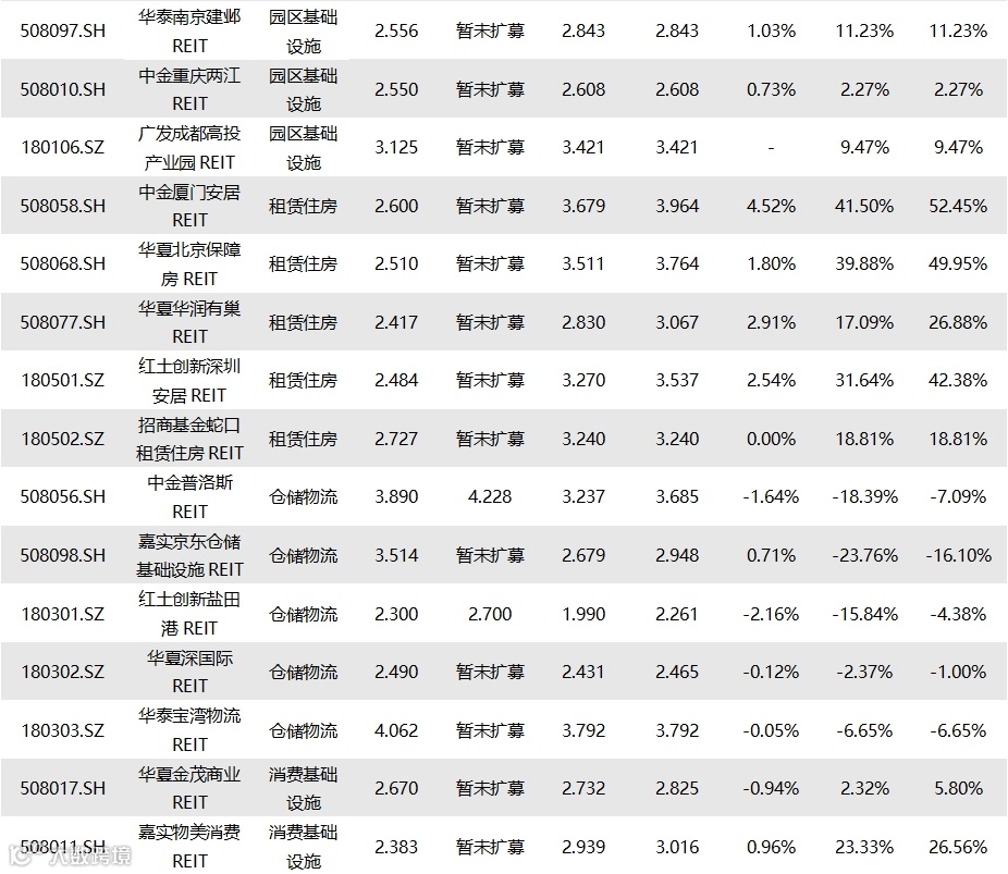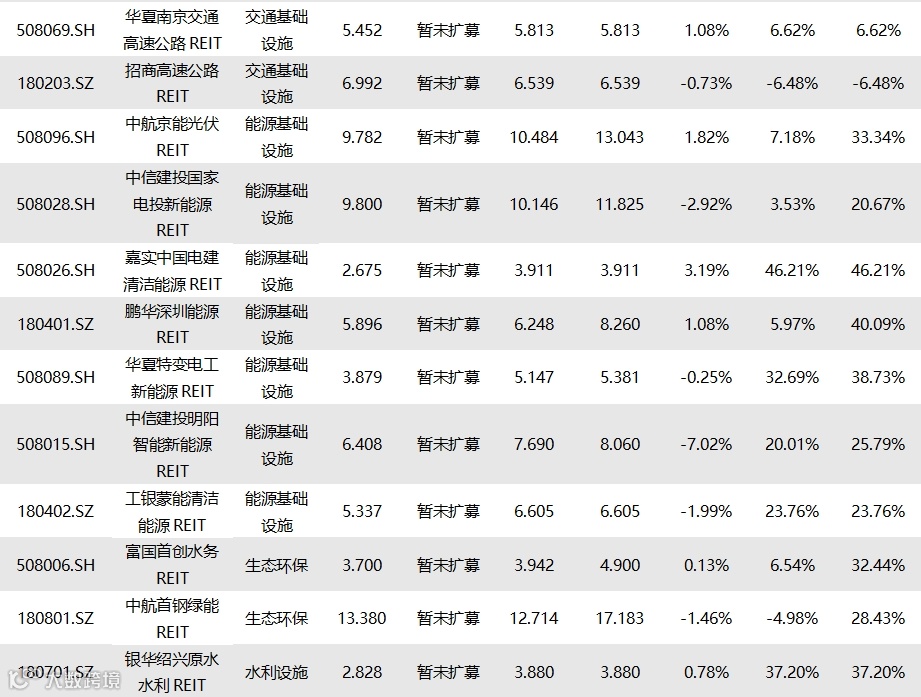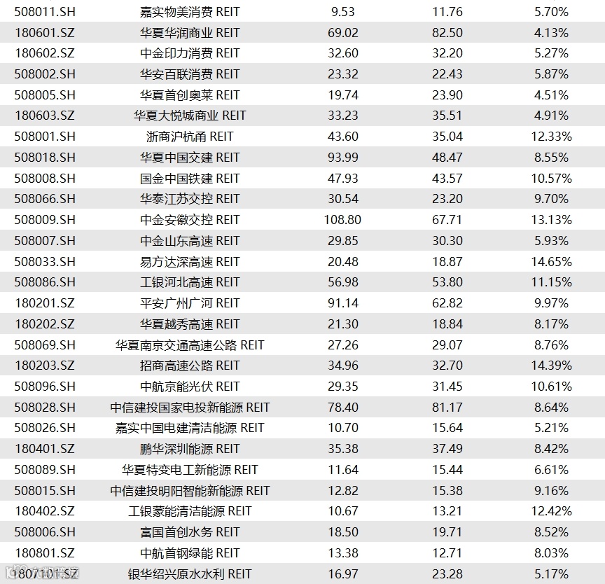 截至12月20日收盘,已上市55只REITs的收益率情况如下表所示: